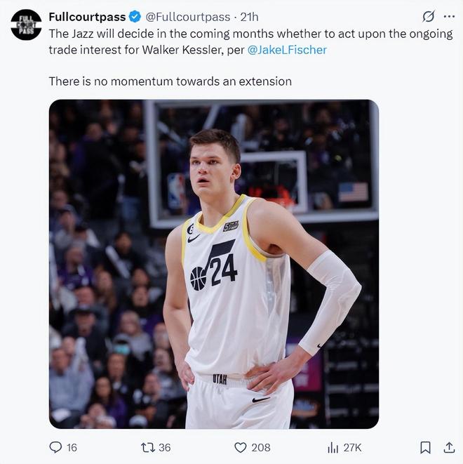 实际上9月26日就已经曝出凯斯勒与爵士的提前续约谈判陷入僵局,三年级生的提前续约截止日是10月21日,凯斯勒可能无法与球队达成续约,那么湖人就可能会重启交易谈判,此前的消息是爵士会索要里夫斯与两个首轮签。