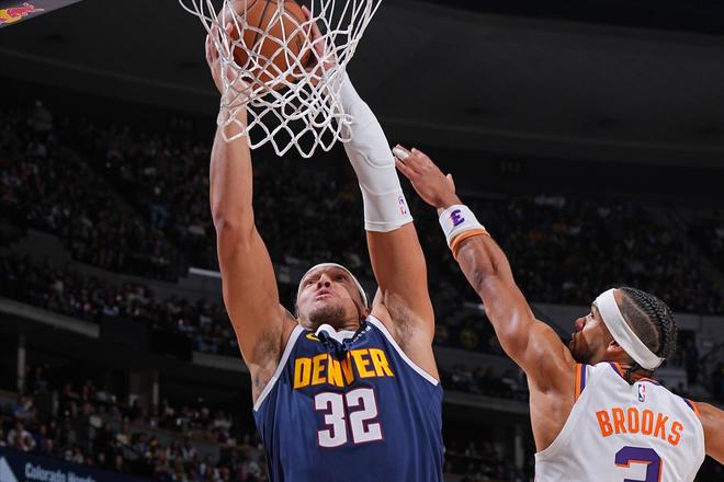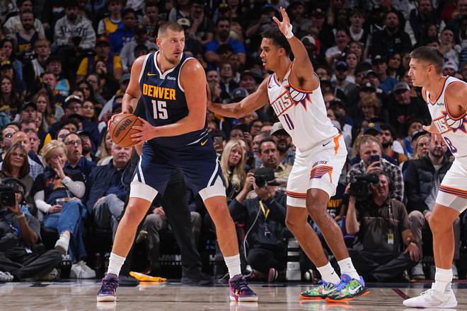 约基奇14+14+15连场三双!掘金7人上双大胜太阳 布克31+7