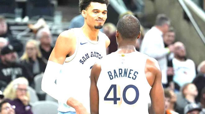 此役福克斯的效率明显比上一场出色,但是末节关键球一个不进,防守又无脑送犯规,是马刺输球的原因之一,全场比赛22中10,3分7中4,得到24分4篮板10助攻;文班亚马今天21中10,得到26分12篮板4助攻3盖帽,虽然数据不炸裂,但是在场正负值+6,基本打出了自己的水准。不幸运的是,文班亚马遇到了连续两场都暴走的库里。